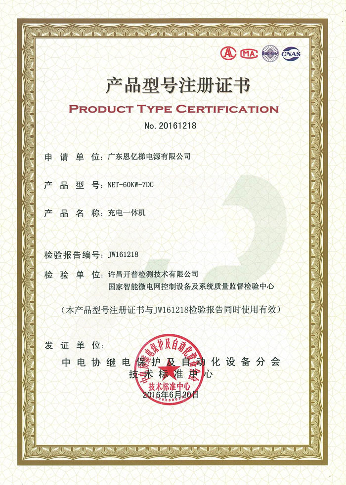 產品型號注冊證書(充電一體機)