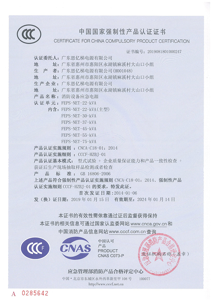 中國國家強制性產(chǎn)品認證(消防設(shè)備應(yīng)急電源)