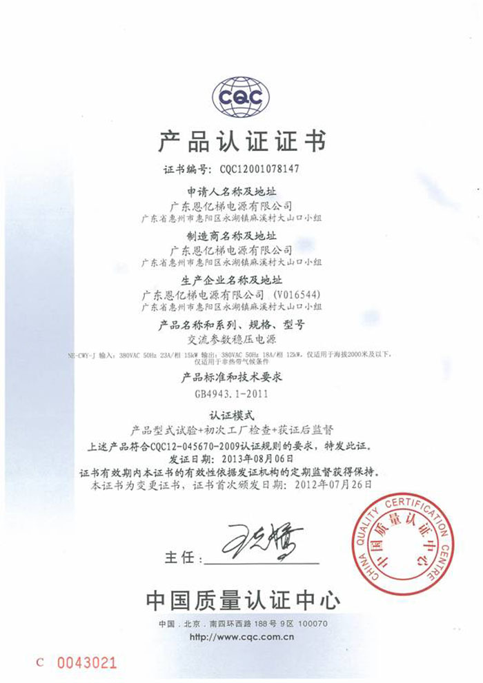 中國國家強制性產品認證(交流參數(shù)穩(wěn)壓電源)